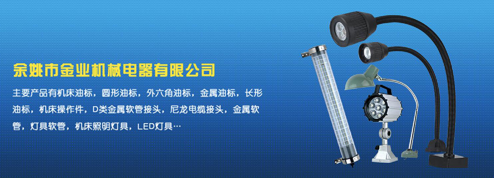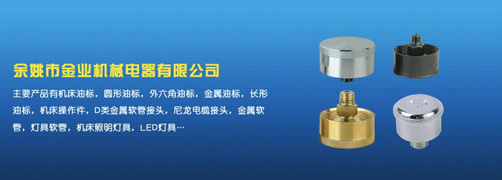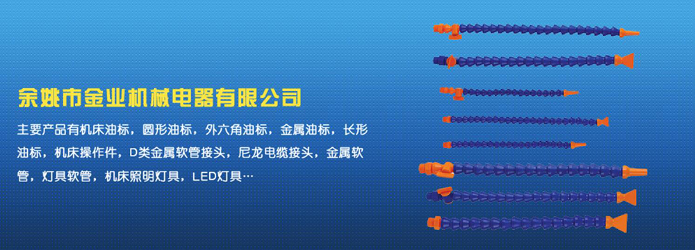 余姚市金業(yè)機(jī)械電器有限公司主要產(chǎn)品有機(jī)床油杯,圓形油標(biāo),外六角油標(biāo),金屬油標(biāo),長(zhǎng)形油標(biāo),機(jī)床操作件,D類金屬軟管接頭,尼龍電纜接頭,金屬軟管,燈具軟管,機(jī)床照明燈具,LED燈具,DGT型線路軟管防護(hù)套,TL型鋼制電纜手軌,電纜尼龍拖鏈,可調(diào)塑鋼冷卻管等產(chǎn)品,規(guī)格齊全,全部自制。望國(guó)內(nèi)外客戶前來考察:共同發(fā)展…